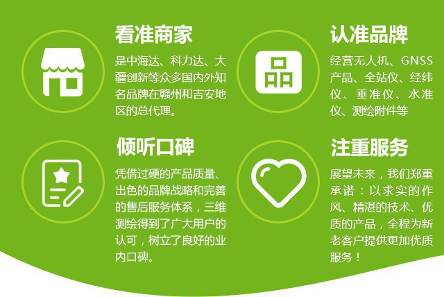 三维测绘经过多年来的不断创新和努力,销售及服务网点已覆盖了赣南及吉安地区,辐射整个江西省,已发展成为一家集产品销售、测绘技术综合服务为一体的综合公司。